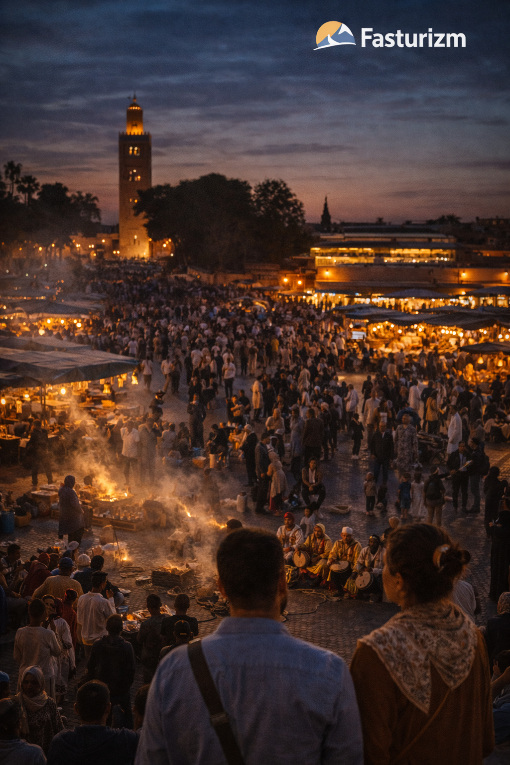 Fas kaynaklarının ortak vurgusu şudur: Jamaa El-Fna’nın asıl gücü, gündüz ile akşam arasındaki bu dönüşümde yatar. Aynı mekân, gün içinde iki farklı ritimle yaşar; bu da meydanı dünyada eşi benzeri olmayan bir kamusal sahneye dönüştürür. Türk ziyaretçiler için bu deneyim, yalnızca görsel değil; duyusal ve toplumsal bir keşif anlamına gelir.